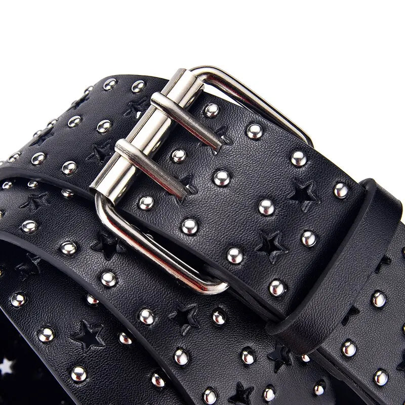 Women's Belt Fashion Pentagonal Star Hollowed out Belt Y2K Belt Hip-hop Rock Punk Trend Matching Jeans Belt for Men and Women